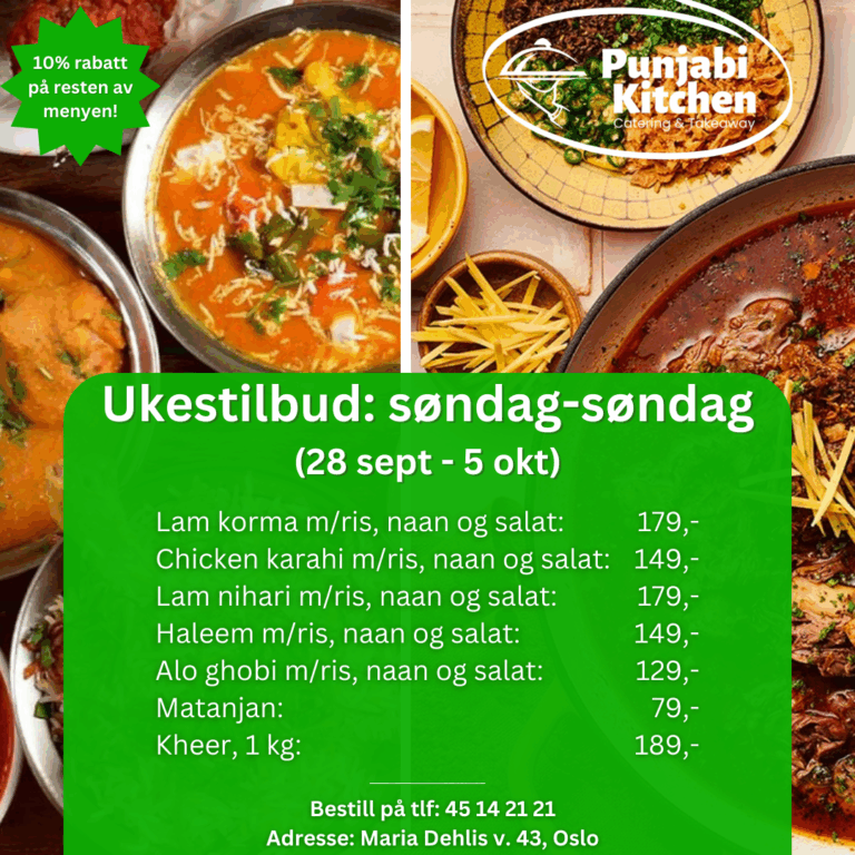 Jeg anbefaler tii deres her er opent en helt ny Panjabi kjøkken på Hagenstua dere kan bestille mat fra 10 . 300 persons mat helt nytt med god smak
